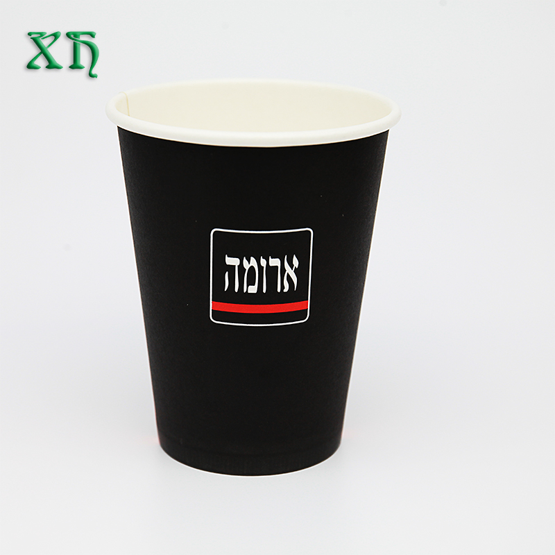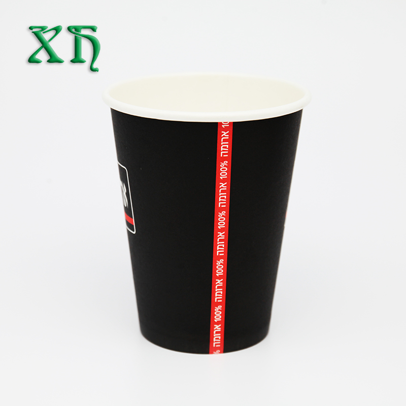 Бумажный стаканчик с одной стенкой черного цвета на 12 унций с крышками